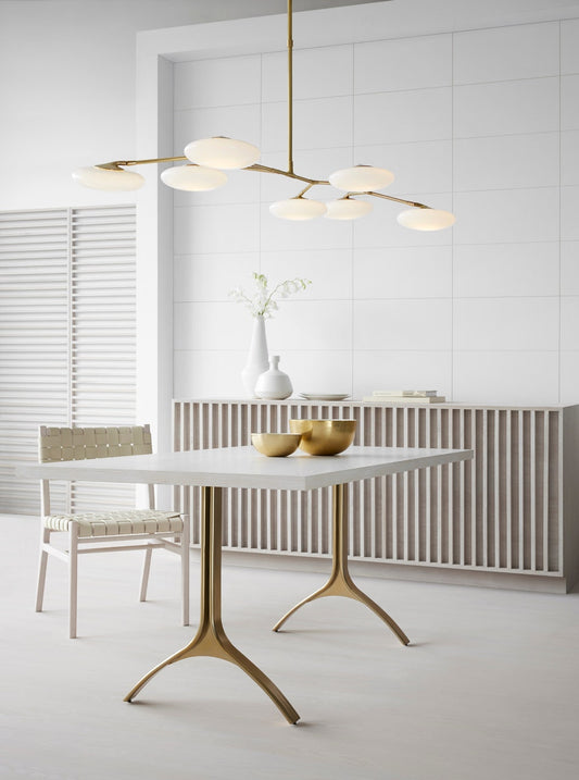 Brindille XL Articulating Linear Chandelier - Soft Brass with White Glass